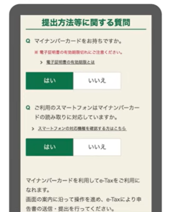 - 「スマートフォンはマイナンバーカードの読み取りに対応していますか?」→【はい】