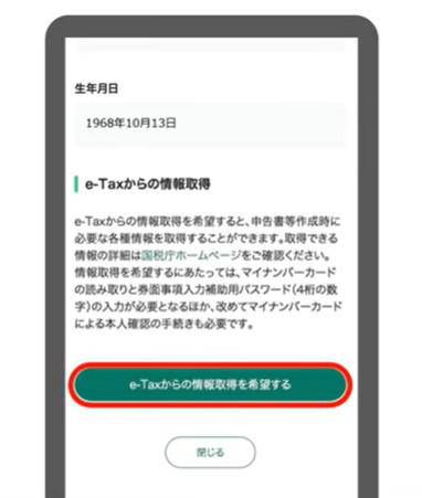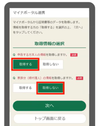 - 「取得する情報(ご自身の情報)」選択画面で