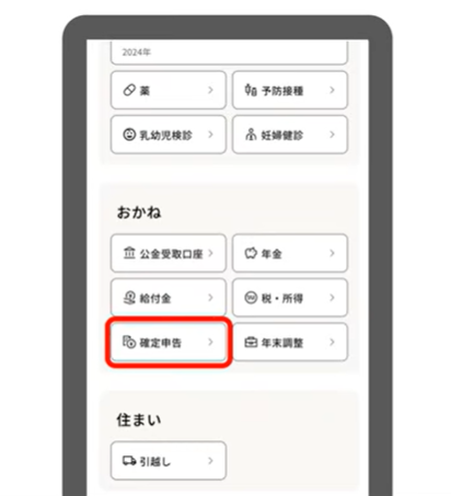 - 「確定申告」をタップ