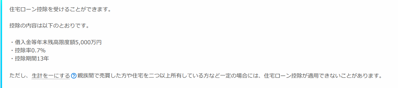上記のように質問に回答していくと住宅ローン控除を受けることが出来るかどうかの判定結果が表示されます。