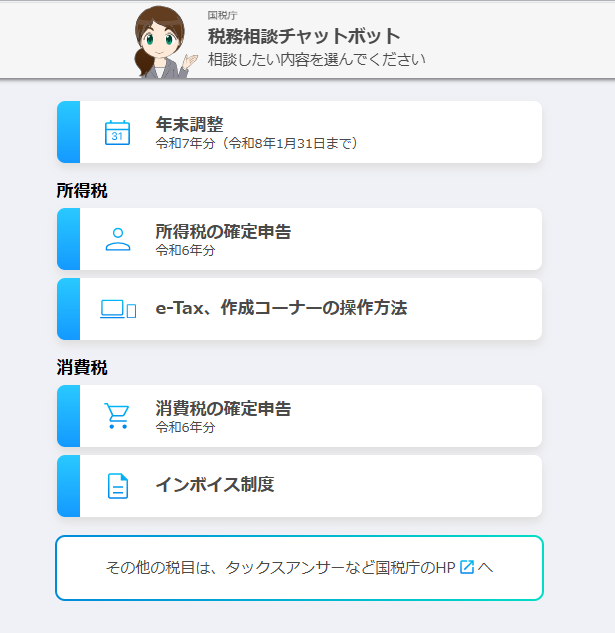 国税庁 税務相談チャットボットふたばで適用判断